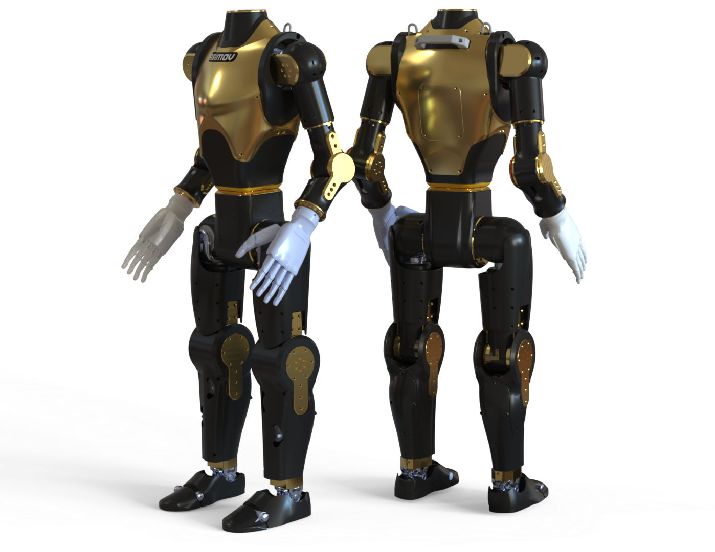 Asimov has a modular design. It consists of separate components, legs, torso, arms, head, that all snap together.