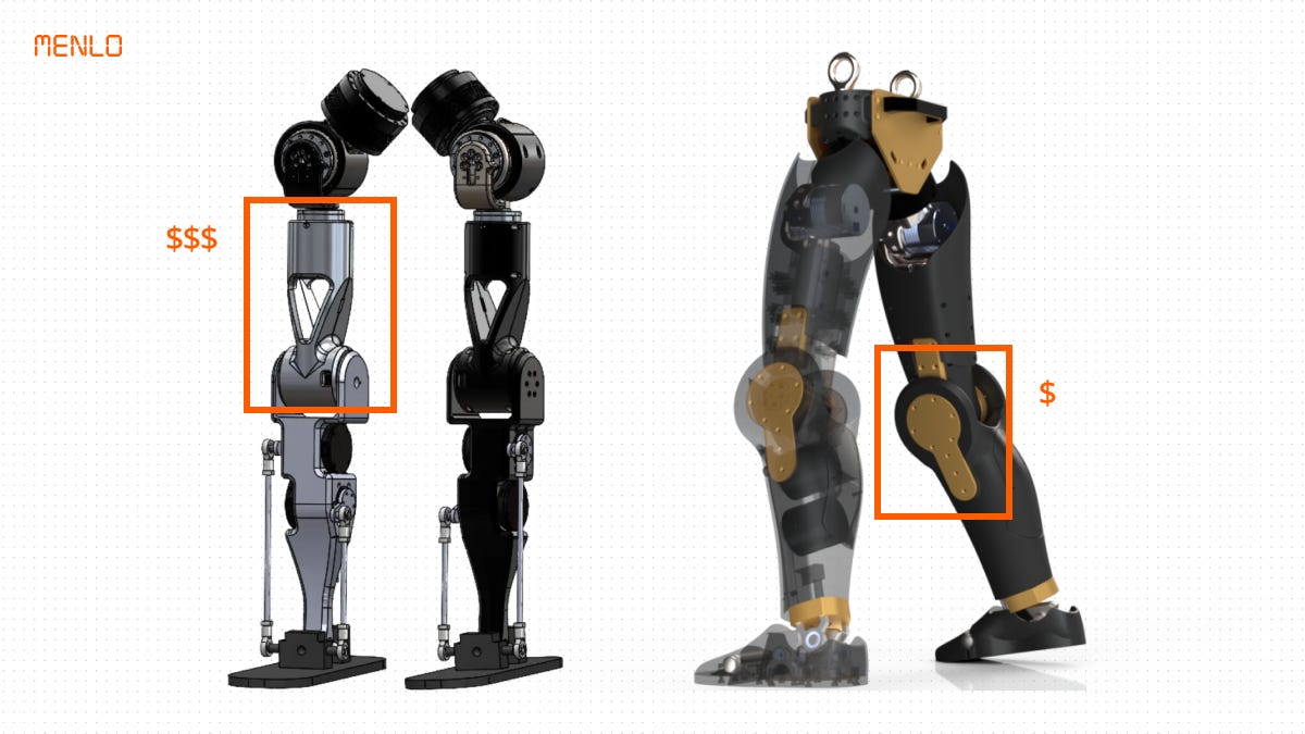 There’s also a practical reason. Modular designs enables assembly. Each part of the robot requires different motors. The motor that attaches an arm is completely different from what you need at the hip. Clear load paths, repeatable interfaces, and serviceable modules mean the robot can be built and maintained without specialized tooling. You shouldn’t need a PhD and a custom jig to swap out a motor.